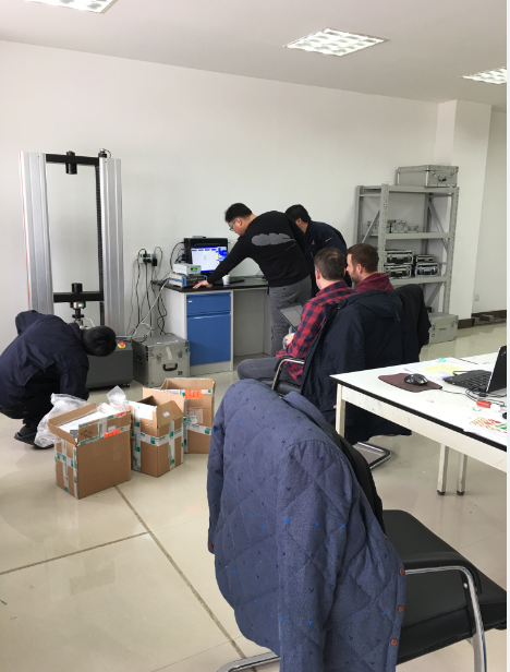 2017年2月8日,实验室新年上班第三天一大早,接到芜湖客户“联合汽车电子有限公司芜湖分公司”的求助电话,该单位从德国博世新购置的力值传感器急等验收安装,产线急等使用。实验室急客户所急,安排好力学专业人员,提前将拉压力试验机开机预热,德国博世调试安装人员从芜湖赶来即可进行校准测试。