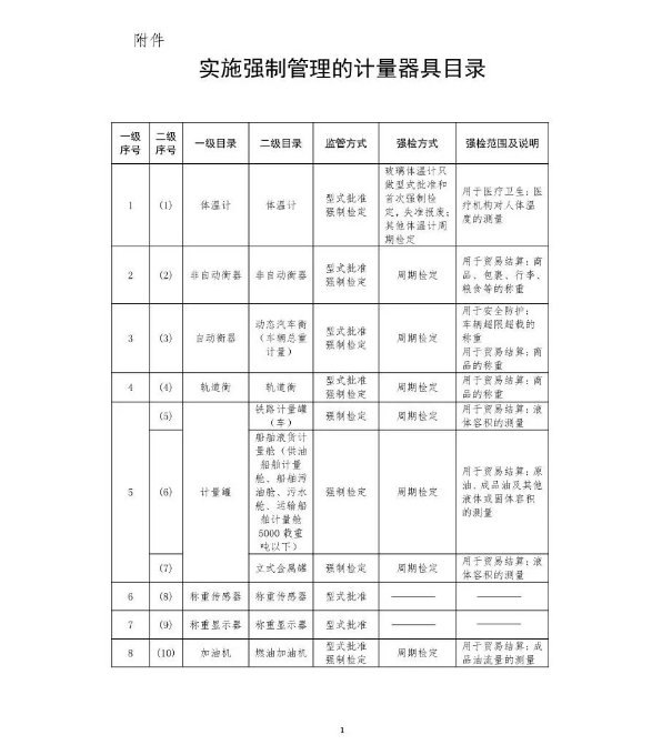 附件:实施强制管理的计量器具目录
