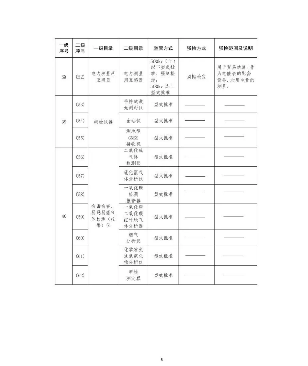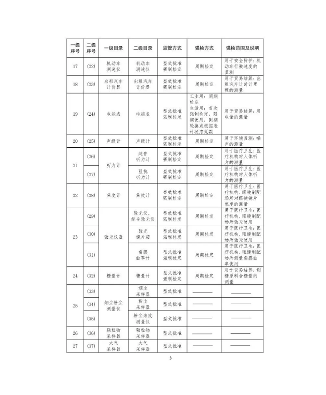 六、强制检定的工作计量器具的强检方式、强检范围及说明见《目录》。